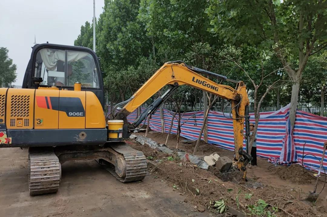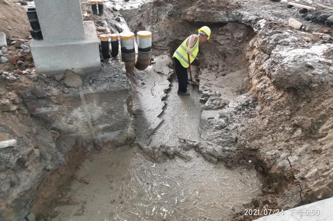7月21日,用一天的时间对厂区道路实施清淤、修复倾倒树木、完成基坑排水作业。